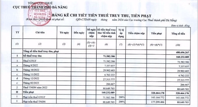 Vi phạm có quy mô lớn này thuộc tình tiết tăng nặng, Công ty CP Môi trường Đô thị Đà Nẵng bị áp dụng xử phạt gấp 2 lần số tiền trốn thuế, tổng cộng là hơn 320 triệu đồng.