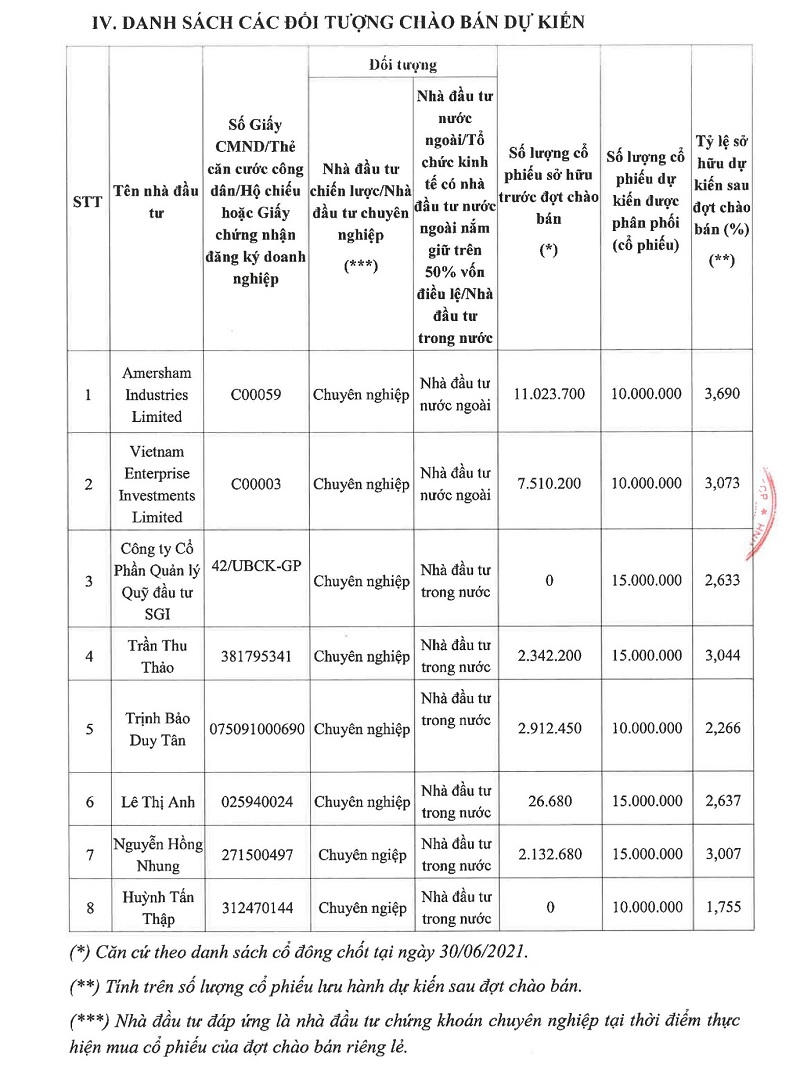 Danh sách nhà đầu tư dự kiến mua cổ phiếu riêng lẻ của KBC (Nguồn: KBC).