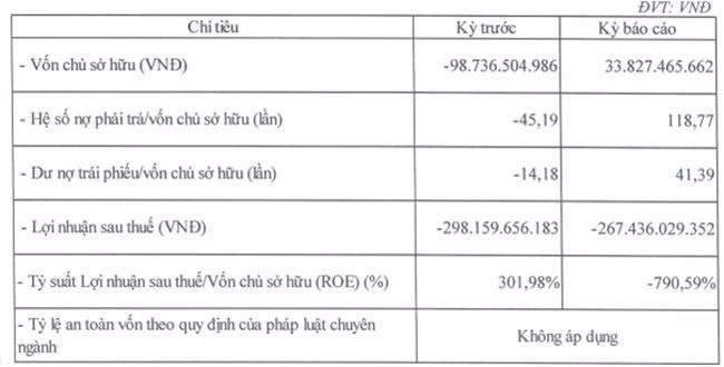 Đáng chú ý, hệ số nợ phải trả/vốn chủ sở hữu của doanh nghiệp này ở mức cao ngất ngưởng 118,77 lần, tương đương nợ phải trả của doanh nghiệp này đạt mức 4.018 tỷ đồng.