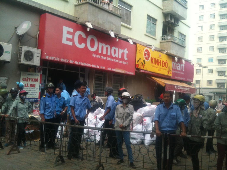 Công ty HUDS huy động hàng chục người mặc đồng phục của HUDS tới cưỡng ép thu hồi hàng hóa của Siêu thị ECO Mart