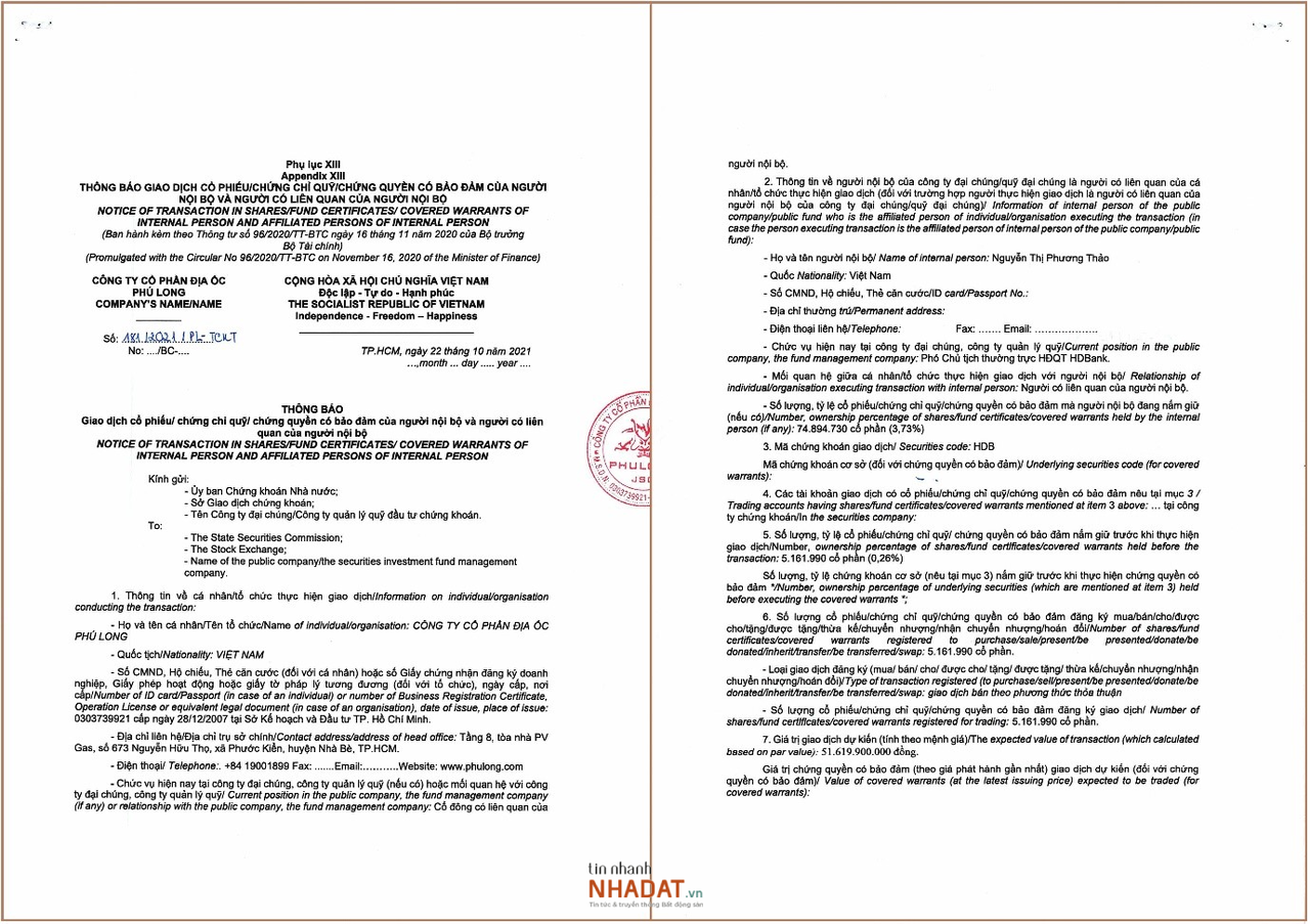 Theo thông tin được công bố, số lượng cổ phiếu HDB được Phú Long đăng ký bán là 5.161.990 cổ phiếu. Được biết đây là toàn bộ số cổ phiếu mà Địa ốc Phú Long sở hữu tại HDBank.