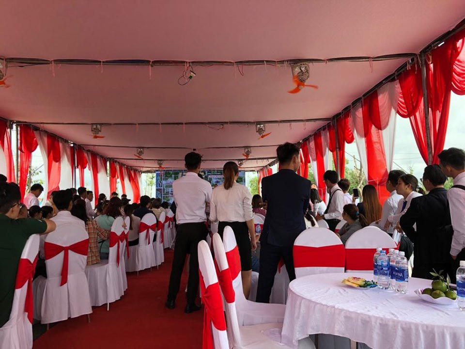 Phía bên trên, MC chương trình liên tục thông báo về những nền đất đã được khách hàng đặt mua cùng với số tiền đặt cọc. Nhiều khách hàng, bị “choáng ngợp” trước “sức nóng” của buổi mở bán, đã không kịp suy nghĩ mà vội vàng “xuống tiền” để kiếm cho mình một sản phẩm.