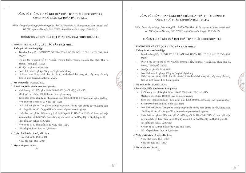 Trước đó, IPA đã công bố nghị quyết của Hội đồng quản trị (HĐQT) về việc triển khai phương án phát hành cổ phiếu thưởng để tăng vốn cổ phần từ nguồn vốn chủ sở hữu.