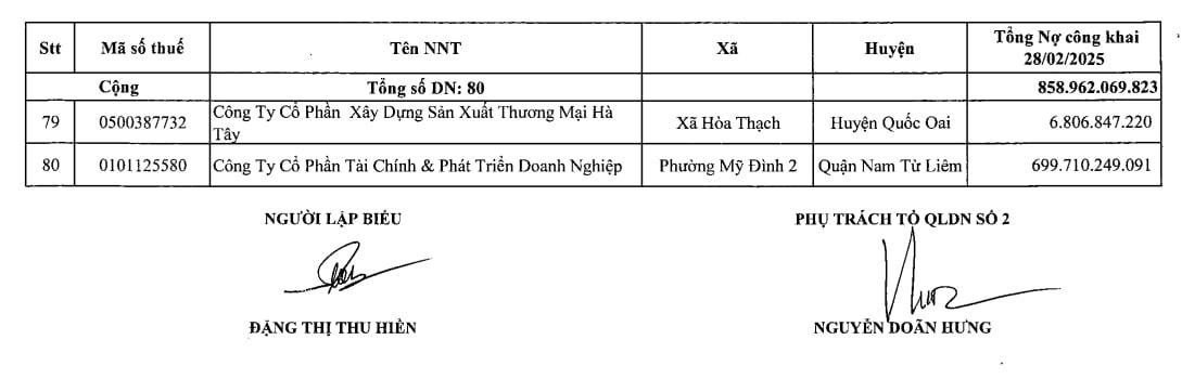 Công ty cổ phần Tài chính và phát triển doanh nghiệp có địa chỉ tại phường Mỹ Đình 2, quận Nam Từ Liêm, có số nợ tiền thuế lên tới 699,71 tỷ đồng.