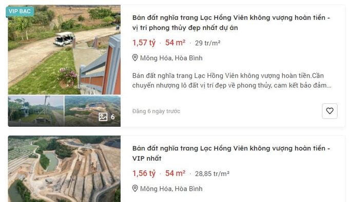 Trên các trang mua bán bất động sản, hiện nay những vị trí đẹp tại công viên nghĩa trang này có giá lên tới 50 triệu đồng/m2.