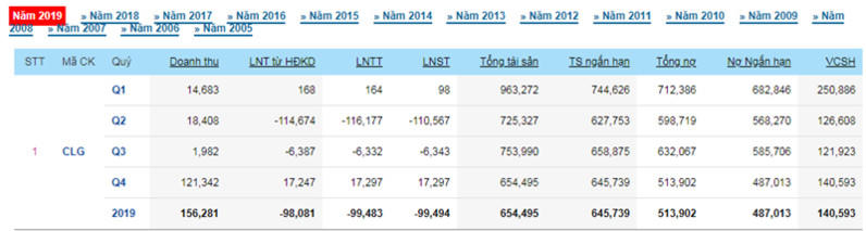 Đặc biệt, năm 2019, CLG ghi nhận tổng nợ 513 tỷ đồng, trong đó nợ ngắn hạn chiếm đến 94% tổng nợ. Nợ ngắn hạn quá lớn cũng là gánh nặng gây sức ép đến khả năng chi trả của công ty. Chưa kể đến tổng nợ của CLG gấp 3,6 lần vốn chủ sở hữu.