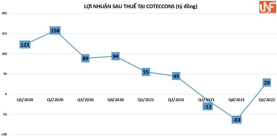Năm 2022, Coteccons đề ra mục tiêu 15.010 tỷ đồng doanh thu, tăng 65% so với năm 2021 song lợi nhuận sau thuế dự kiến giảm 17% còn 20 tỷ đồng. Kết thúc quý I, doanh nghiệp đạt 12,7% kế hoạch doanh thu và vượt 45% kế hoạch lợi nhuận cả năm.