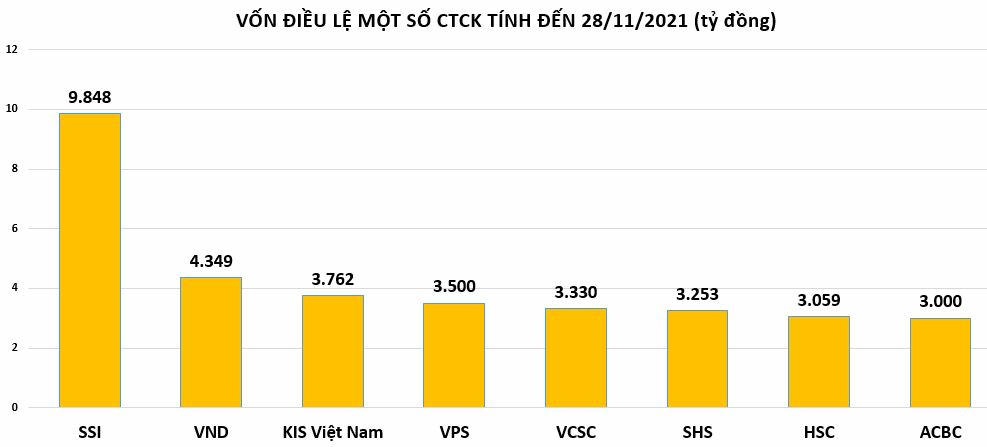 Đáng chú ý, quy mô tăng vốn của SSI hay VND cũng đã ngang ngửa với vốn điều lệ của một số ngân hàng tầm trung như TPBank (11.700 tỷ đồng), LienVietPostBank (12.036 tỷ), Eximbank (12.355 tỷ đồng), OCB (13.699 tỷ đồng), Seabank (14.785 tỷ đồng), MSB (15.275 tỷ) hay VIB (15.530 tỷ)…