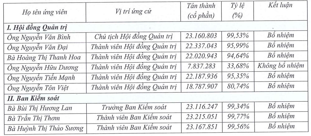 Tại ĐHĐCĐ thường niên năm 2023, HĐQT đã thay một loạt những người mới. Ông Nguyễn Văn Bình đã được bầu làm Chủ tịch HĐQT cho nhiệm kỳ 2023 – 2028, từ ngày 05/04/2023. Bốn thành viên HĐQT khác gồm ông Nguyễn Văn Đại, kiêm Tổng Giám đốc, bà Hoàng Thị Thanh Hoa, ông Nguyễn Tôn Việt và ông Nguyễn Tiến Mạnh.