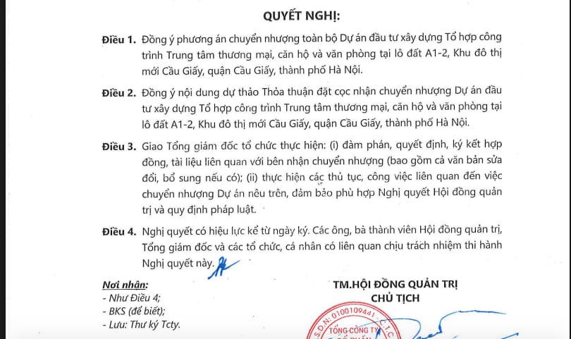 Hội đồng quản trị Tổng công ty Cổ phần Đầu tư Xây dựng và thương mại Việt Nam (CTX Holdings) vừa ban hành nghị quyết chuyển nhượng toàn bộ dự án tại ô đất A1-2 Khu đô thị mới Cầu Giấy (còn có tên gọi là Constrexim Complex), địa chỉ quận Cầu Giấy, TP Hà Nội. Hiện bên nhận chuyển nhượng chưa được tiết lộ.