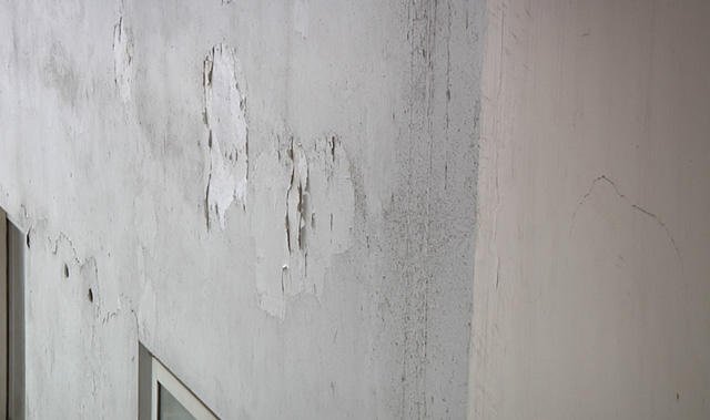 Bên ngoài tòa nhà đã bong tróc