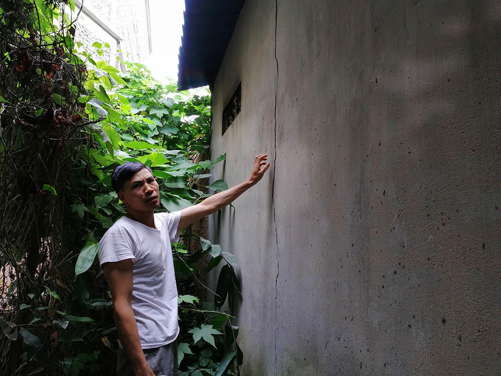 Không chỉ vậy, theo lời bà Lý, từ khi dự án khu đô thị VCI thi công, căn nhà của gia đình bà và một số hộ xung quanh cũng xuất hiện các vết nứt kéo dài 40 – 50 cm. Những vết nứt này cứ ngày một dài ra khiến cho các hộ dân nơm nớp lo sợ một ngày, nhà mình có thể sẽ đổ sập.
