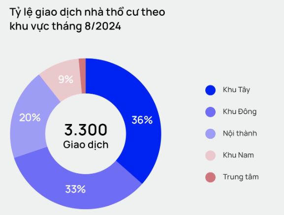 Tại khu vực Hà Nội, trong tháng 8, các quận Gia Lâm và Long Biên ghi nhận 1.100 giao dịch, chiếm 33% thị phần.