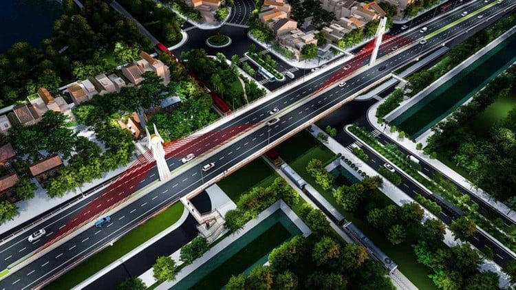 Dự án cầu vượt đường sắt Bắc – Nam và đường hai đầu cầu thuộc tuyến Đại lộ Đông Tây được xây dựng vĩnh cửu bằng bê tông. Tổng bề rộng cầu 25m, bao gồm 4 làn xe giới, 2 làn xe hỗn hợp. Hoàn thiện tổng thể nút giao giữa đường Trịnh Kiểm và tuyến Đại lộ Đông Tây và các tuyến giao thông lân cận.