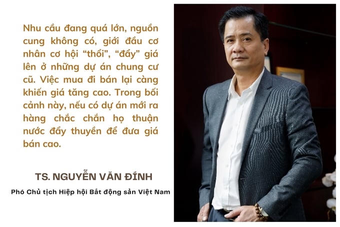 TS Nguyễn Văn Đính, Chủ tịch Hội Môi giới Bất động sản Việt Nam, nhấn mạnh, 5 năm nay, Hà Nội không có dự án mới nên nguồn cung cạn kiệt, khan hiếm, trong khi nhu cầu cao.