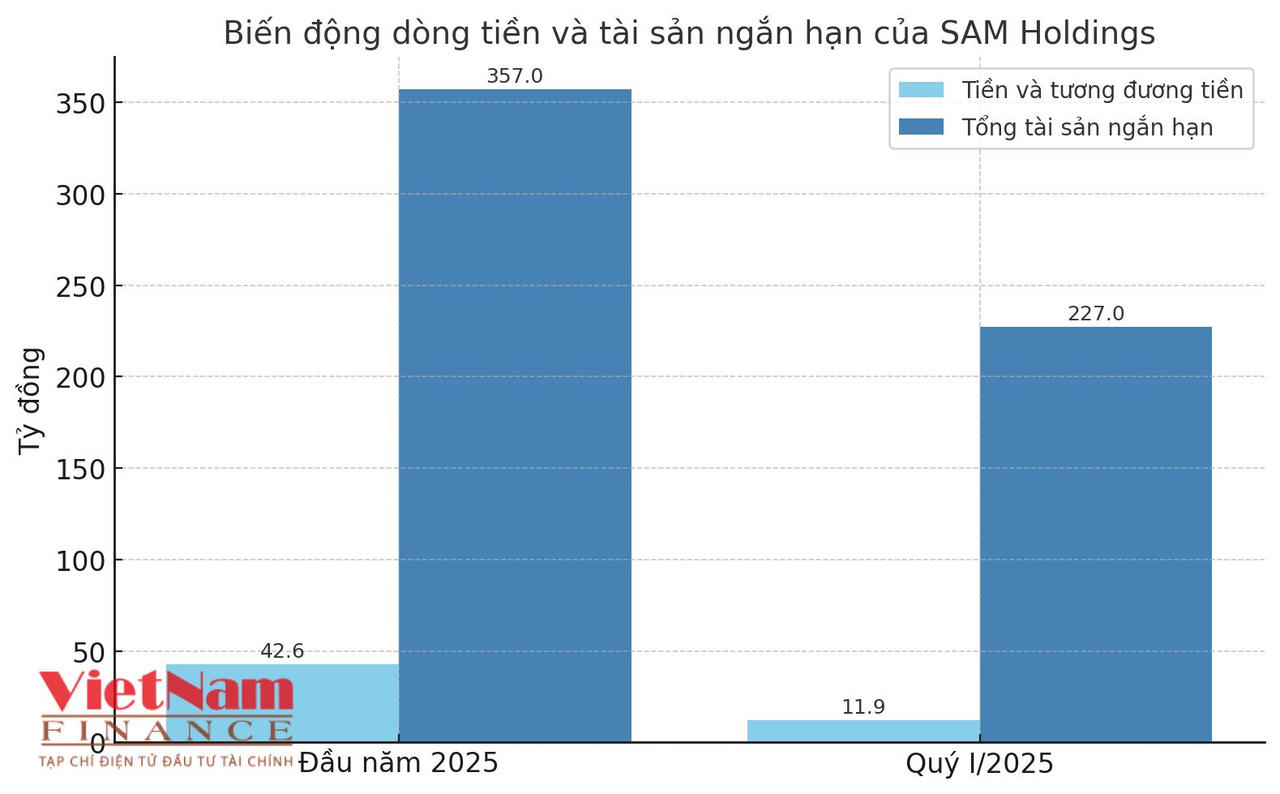 Một điểm đáng chú ý là dòng tiền và tài sản ngắn hạn của SAM Holdings đang sụt giảm nghiêm trọng.