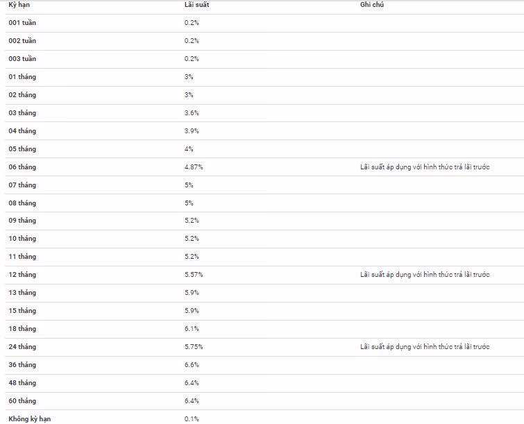 Lãi suất tiền gửi cũng được điều chỉnh tăng mạnh đối với hình thức gửi trực tuyến (online). Theo đó, lãi suất kỳ hạn 12 tháng tăng 0,2 điểm % so với trước, lên 5,8%/năm.