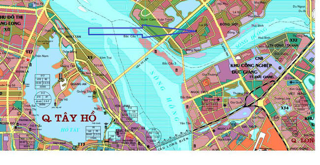 Quỹ đất dự kiến phát triển đô thị đối ứng xây dựng cầu mới (khu vực khoanh đỏ).