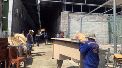 "Trong ngày 22/4, các lực lượng chức năng đã cưỡng chế công trình nhà hàng Cao Hùng do ông Bùi Quốc Tuấn làm chủ, xây dựng từ năm 2018, diện tích 1.122m2. Trước khi tháo dỡ tôn, khung sắt và tường gạch, lực lượng chức năng phải di chuyển đồ đạc bên trong đến nơi tập kết an toàn.