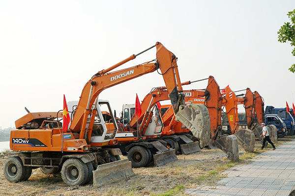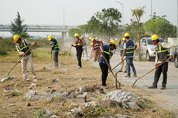 Công nhân dọn dẹp vệ sinh, tạo mặt bằng thi công công trình.