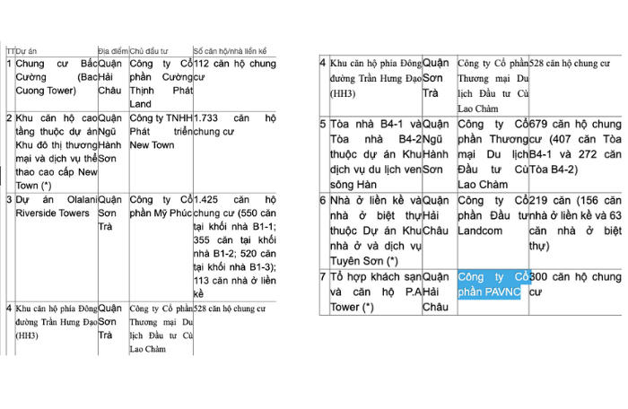 Theo đó, có 3 dự án thuộc trường hợp trên là: Khu căn hộ cao tầng thuộc dự án Khu đô thị thương mại và dịch vụ thể thao cao cấp New Town của Công ty TNHH Phát triển New Town; Nhà ở liền kề và nhà ở biệt thự thuộc Dự án Khu nhà ở và dịch vụ Tuyên Sơn của Công ty cổ phần Đầu tư Landcom; Tổ hợp khách sạn và căn hộ P.A Tower của Công ty cổ phần PAVNC.