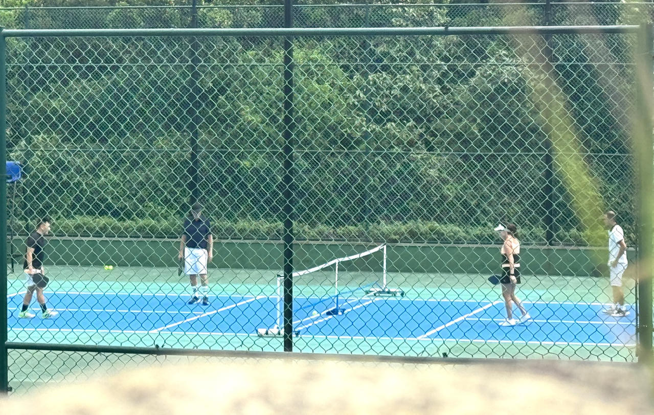Những ngày ở Đà Nẵng, ông Bill Gates cùng bạn gái đã chơi tennis cùng 2 người Việt tại khuôn viên của resort.