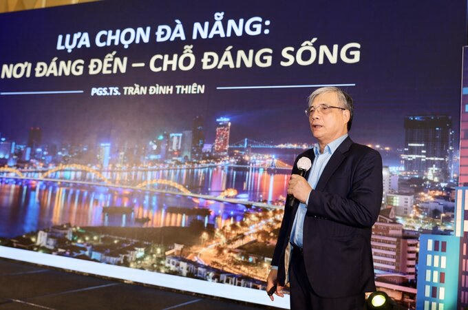 PGS. TS. Trần Đình Thiên, nguyên Viện trưởng Viện Kinh tế Việt Nam mở đầu hội thảo bằng tham luận “Lựa chọn Đà Nẵng Nơi đáng đến – chỗ đáng sống” ông nhấn mạnh: “Đà Nẵng chưa phải nhất quốc gia nhưng độ vững bền và tốc độ thì tôi nghĩ ở Việt Nam ít có địa phương nào có thể tự hào như Đà Nẵng về những con số vượt trội thế này. Tuy nhiên động lực tới đây của Đà Nẵng phải là động lực cạnh tranh quốc tế chứ không chỉ so với các tỉnh thành khác trong nước. Mà tới đây, chính là những con đại bàng đến sẽ định hình chân dung phát triển cho Đà Nẵng. Có những con đại bàng ấy cùng lực lượng doanh nghiệp thì Đà Nẵng dứt khoát bay lên. Cùng đó, sự đồng hành của chính quyền, của người dân Đà Nẵng rất thân thiện, rất sẵn sàng phát triển sẽ là cơ sở để chúng ta tin vào điều ấy”.