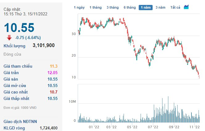 Động thái bán cổ phần của Chủ tịch Dabaco và con diễn ra trước bối cảnh thị giá DBC “lao dốc” hơn 60% so với thời điểm đầu năm, vốn hóa theo đó cũng giảm gần 4.000 tỷ đồng. Kết phiên 15/11, DBC đang giảm sàn ở mức 10.550 đồng/cp, đây cũng là vùng giá thấp nhất của mã này trong vòng gần 30 tháng kể từ tháng 5/2020.