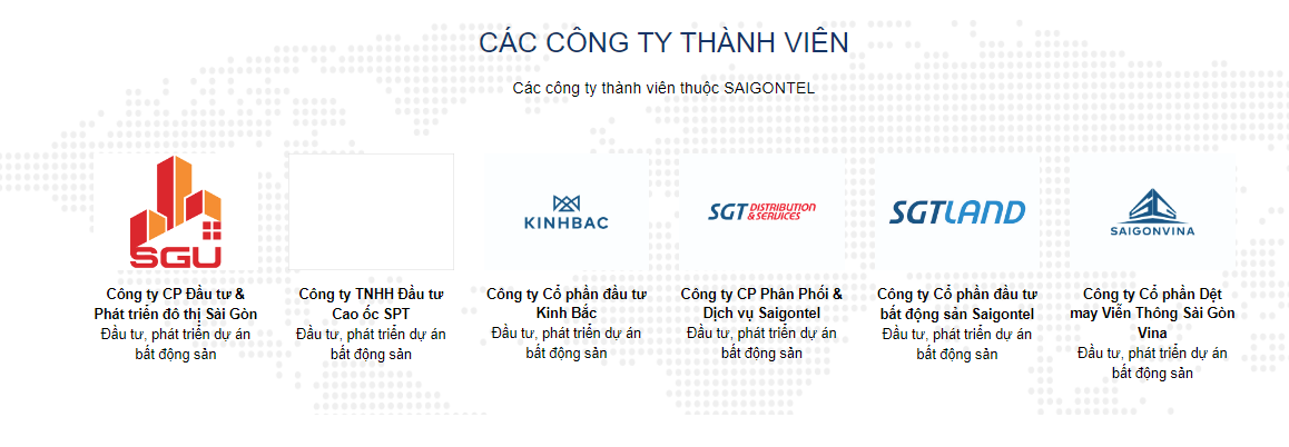 Saigontel là thành viên thuộc tập đoàn Đầu tư Sài Gòn (SGI), tập đoàn tư nhân hàng đầu Việt Nam trong lĩnh vực đầu tư hạ tầng Công nghiệp – Đô thị – Dịch vụ.
