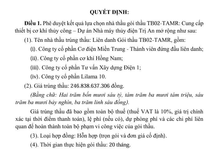 Thời gian gần đây, Cơ điện Miền Trung đều đặn gặt hái nhiều hợp đồng giá trị lớn trong đấu thầu các dự án ngành điện. Tháng 8/2025, CJC góp mặt trong liên danh được công bố trúng gói thầu cung cấp thiết bị cơ khí thủy công, dự án Nhà máy Thủy điện Trị An mở rộng, với giá trúng thầu hơn 246,8 tỷ đồng.