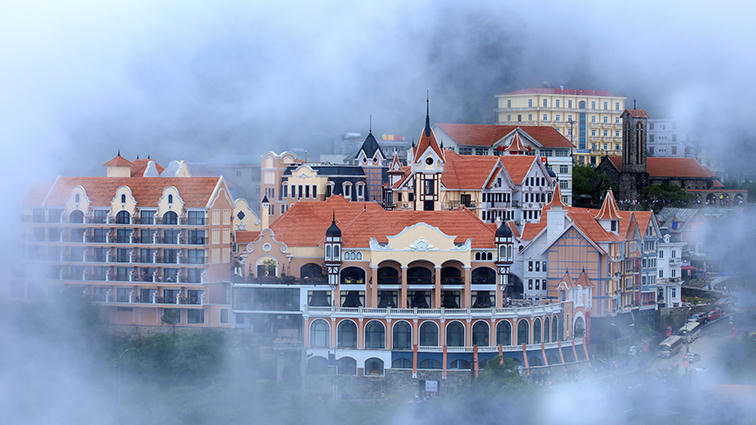 Khách sạn Lâu đài Tam Đảo có kiến trúc pha trộn giữa phong cách Neo-Gothic và Phục Hưng, được lấy cảm hứng từ lâu đài Peles (Rumania) và Schloss Neuschwanstein ở Bavaria (Đức), với những bức tường viền gỗ sẫm màu và mái nhọn lợp đá Ardoise. Hiện, Khách sạn Lâu đài đang trong quá trình hoàn thiện, dự kiến sẽ hoàn thành và khai thác vào năm 2019.