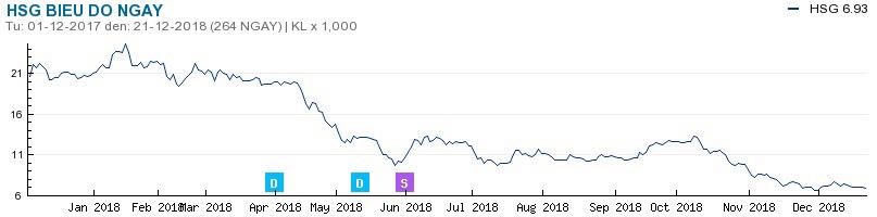 Cổ phiếu HSG đang đi xuống vùng giá thấp nhất trong nhiều năm