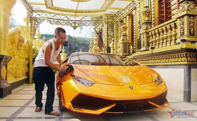 Không chỉ sở hữu tòa lâu đài, gia đình anh Thoan còn có nhiều siêu xe và cũng được sơn màu vàng hợp tông với lâu đài.