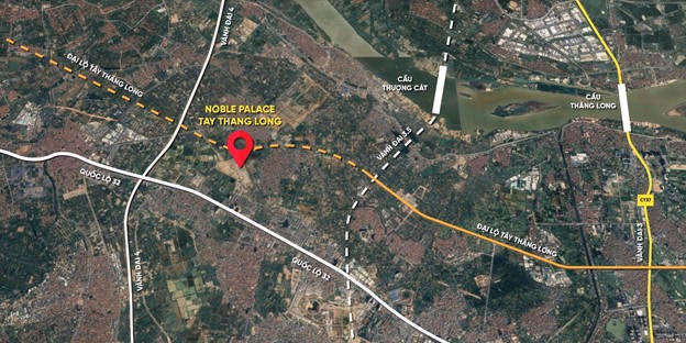 Trong đó, dự án Noble Palace Tay Thang Long đang thu hút sự chú ý đặc biệt của giới đầu tư với vị trí đắc địa bậc nhất tại tâm điểm giao thương phía Tây: nằm giữa hai đường vành đai 4 và vành đai 3.5; kế cận đại lộ Tây Thăng Long và quốc lộ 32, đồng thời sở hữu trục đường xuyên tâm rộng 40m là đường nối đường Hoàng Quốc Việt kéo dài đang chuẩn bị về đích, chỉ mất 15 phút để di chuyển đến Hồ Tây sau khi kết nối đồng bộ.