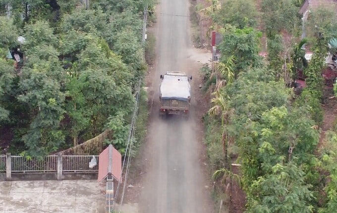 Theo quan sát, tuyến đường liên xã thuộc buôn Tơng Jú, là tuyến đường dân sinh, chiều rộng lòng đường khoảng 4m, không có lề đường, mới chỉ được đổ đá cấp phối. Mỗi lần tải chở đất đi qua, bụi theo lốp xe cuốn lên mù mịt, che khuất tầm nhìn khiến người dân. Học sinh đang lưu thông phải dừng lại nép sát vào tường rào, nhường đường cho xe tải đi qua.