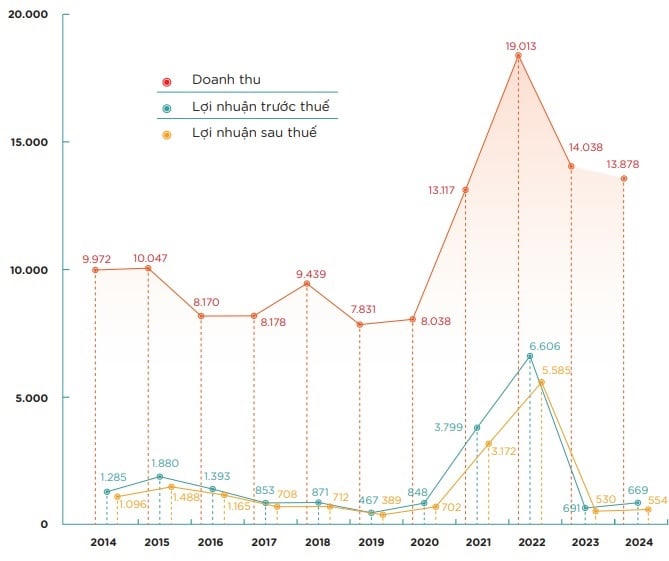 Với kết quả trên, Đạm Phú Mỹ đạt 13.878 tỷ đồng tổng doanh thu (gồm doanh thu thuần, doanh thu tài chính, doanh thu khác), 669 tỷ đồng lợi nhuận trước thuế, lần lượt giảm 1,1% và 3,2% so với năm 2023; lần lượt vượt 9% và 1% kế hoạch được Đại hội 2024 giao phó.