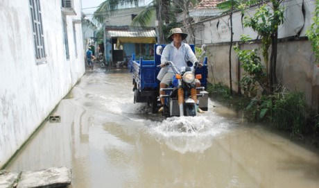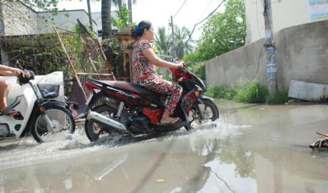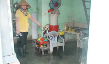 Nước tràn vào nhà kéo theo bùn đất, các hẻm hướng vào khu dân cư nước dâng thành ao, mọi sinh hoạt thường này bị đảo lộn. Người dân than thở không biết phải chịu cảnh cực khổ này đến bao giờ.