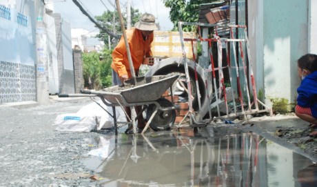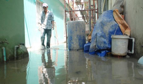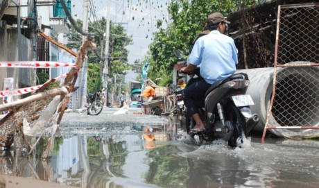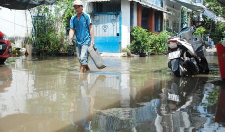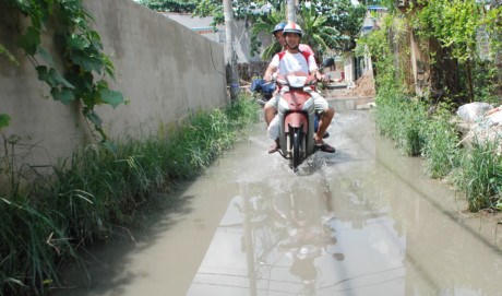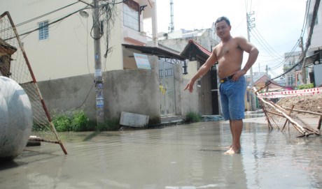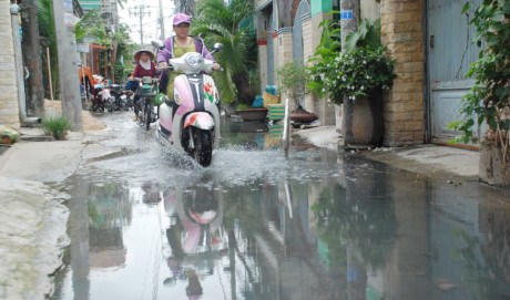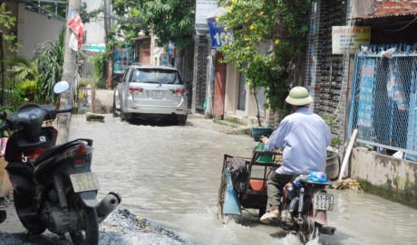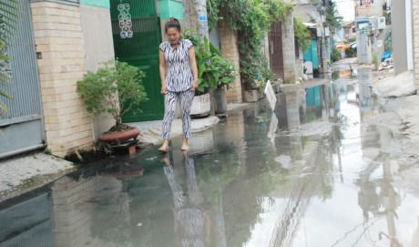 Các con hẻm theo đó cũng trũng hơn nhiều so với đường chính, nên những trận mưa lớn vừa qua nước không có đường rút, nhiều người phải sống chung với ngập từ 0,2 – 0,5m.
