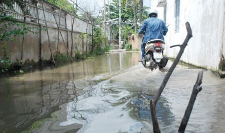 Người dân phải đi lại dưới dòng nước bẩn tù đọng lâu ngày.