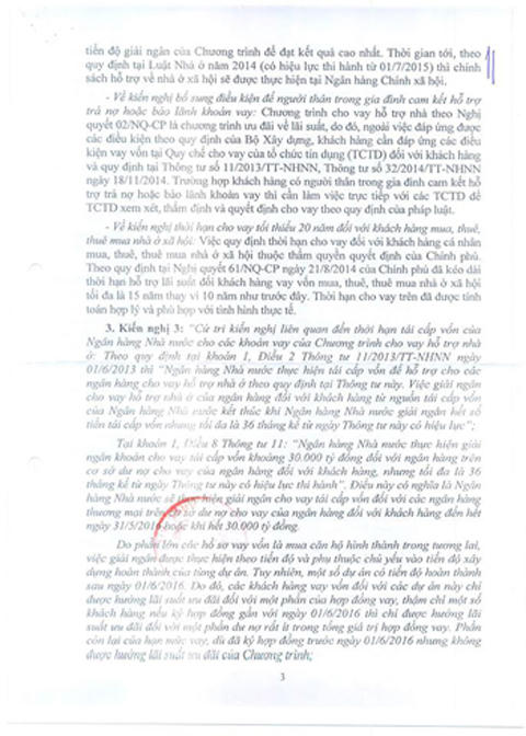 Cụ thể, Ngân hàng Nhà nước trả lời: “Theo quy định tại Khoản 1, Điều 2, Thông tư số 11/2013/TT-NHNN, việc giải ngân cho vay hỗ trợ nhà ở của ngân hàng đối với khách hàng từ nguồn tái cấp vốn của NHNN kết thúc khi NHNN giải ngân hết số tiền tái cấp vốn nhưng tối đa là 36 tháng kể từ ngày Thông tư này có hiệu lực (ngày 01/6/2013).