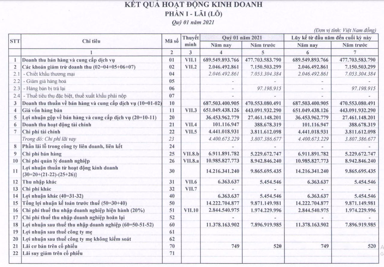 Tương tự, CTCP Tập đoàn Thép Tiến Lên (HOSE: TLH) vừa công bố báo cáo kết quả hoạt động kinh doanh quý 1/2021 với doanh thu thuần hợp nhất đạt gần 979 tỷ đồng và lãi sau thuế trên 120 tỷ đồng, lần lượt tăng 3,9% và gấp hơn 30 lần so với kết quả quý 1/2020.