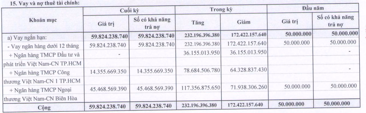 Đồng thời, nợ vay ngân hàng ngắn hạn của VCA cũng tăng thêm hơn 59,8 tỷ đồng. Trong đó, Vietcombank đang là chủ nợ lớn nhất tại VCA với 45,4 tỷ đồng.