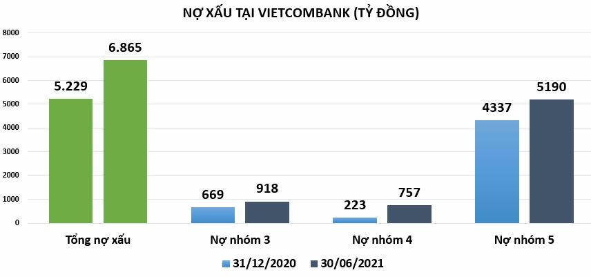 Đáng chú ý, dù đã tăng mạnh trích lập dự phòng rủi ro trong 6 tháng đầu năm nhưng tổng nợ xấu của Vietcombank tại ngày 30/06/2021 vẫn tăng 31% so với đầu năm, chiếm gần 6.865 tỷ đồng.