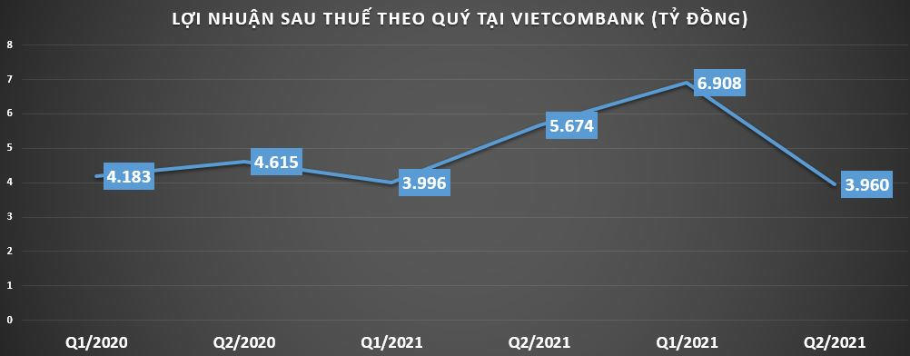 Theo BCTC hợp nhất vừa công bố, Ngân hàng TMCP Ngoại Thương Việt Nam (Vietcombank, HOSE: VCB) báo lãi trước và sau thuế quý 2/2021 giảm 14% so với cùng kỳ, chỉ còn gần 4.938 tỷ đồng và gần 3.960 tỷ đồng.