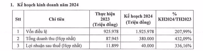 Năm 2024 doanh nghiệp sẽ tăng cường nghiên cứu thị trường, tìm kiếm cơ hội đầu tư, kinh doanh các sản phẩm phù hợp nhu cầu khách hàng. Bên cạnh đó, mở rộng phạm vi hoạt động ra các địa bàn trọng yếu như Bình Dương, Phan Thiết... nhằm đa dạng hoá danh mục đầu tư, hướng đến chu kỳ phát triển mới.