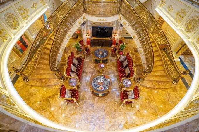 Đáng chú ý là bộ bàn ghế phong cách quý tộc với viền ngoài mạ vàng và bọc vải nhung đỏ. Những món đồ nội thất với những chi tiết đắt giá đều được chủ nhà yêu cầu hoàn thiện tỉ mỉ và hoàn hảo đến từng đường nét.