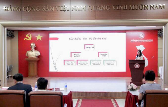 Mở đầu chương trình, PGS.TS Hoàng Xuân Bình - Trưởng khoa Kinh tế Quốc tế đã có bài phát biểu khai mạc, nhấn mạnh vai trò ngày càng quan trọng của ngành Kinh tế quốc tế trong việc định hình chiến lược phát triển quốc gia và hội nhập quốc tế. Tiếp theo, PGS.TS Phạm Thu Hương - Phó hiệu trưởng Trường Đại học Ngoại thương đã có phát biểu, khẳng định sự cần thiết trong việc đổi mới và nâng cao chất lượng đào tạo sau đại học nhằm đáp ứng yêu cầu mới của thị trường lao động toàn cầu.