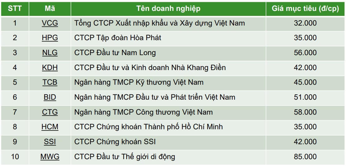 Trên cơ sở phân tích vĩ mô và ngành, nhóm chuyên gia đã đưa ra danh mục 10 cổ phiếu tiềm năng cho nửa cuối năm 2025, bao gồm: VCG, HPG, NLG, KDH, TCB, BID, CTG, SSI, HCM và MWG.