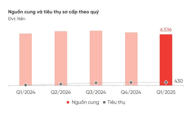 Báo cáo thị trường bất động sản TP HCM và vùng phụ cận của DKRA Group, cho thấy trong quý I, khu vực phía Nam có 102 dự án với hơn 6.530 nền đất được chào bán sơ cấp, tăng 5,3% so với cùng kỳ năm ngoái. Tuy nhiên, lượng tiêu thụ chỉ đạt 430 nền, tương đương tỷ lệ hấp thụ 6,6%. Mặc dù cải thiện hơn so với quý I/2024 (74 nền), con số này vẫn rất thấp so với phân khúc từng được mệnh danh là kênh đầu tư "vua" của thị trường.
