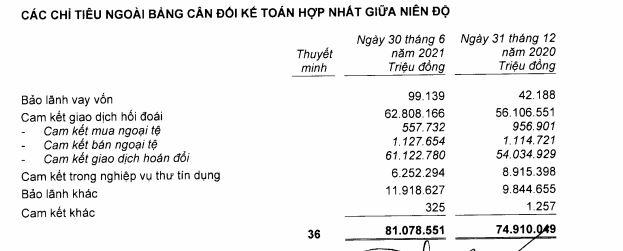 Tại thời điểm 30/6/2021, tổng nghĩa vụ nợ tiềm ẩn của Sacombank ghi nhận hơn 18.270 tỷ đồng. Trong đó, bảo lãnh vay vốn tăng vọt 135%, bảo lãnh khác cũng tăng 21% lên hơn 11.918 tỷ đồng; chỉ có cam kết trong nghiệp vụ thư tín dụng giảm 30% còn 6.252 tỷ đồng.